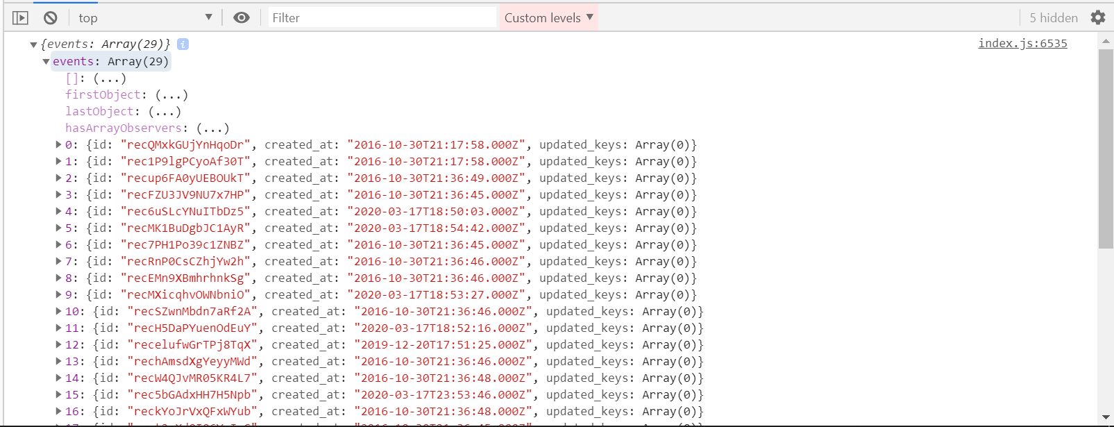 Cool! The data variable contains all of the data that we stuck in events.json.