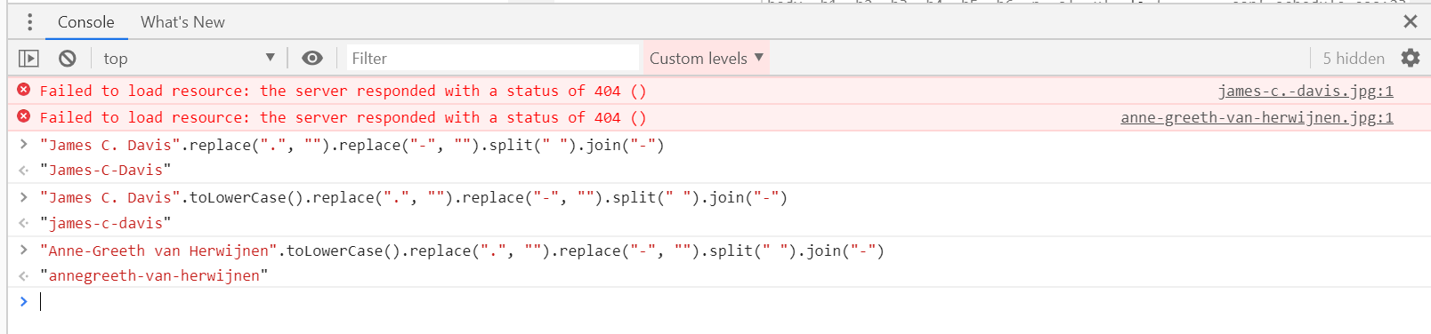 In the first case, it looks like any dashes that were in the original name are removed in the final image name. In the second, we also don't want to include .s in the name.
